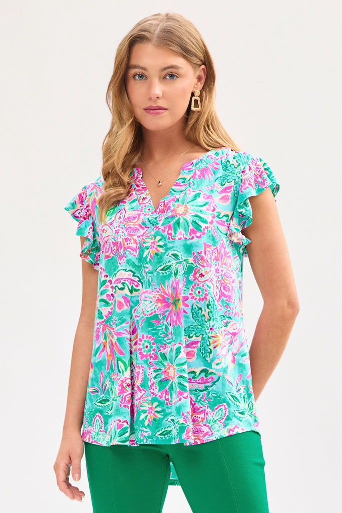 Floral Flutter Sleeve Tank Top